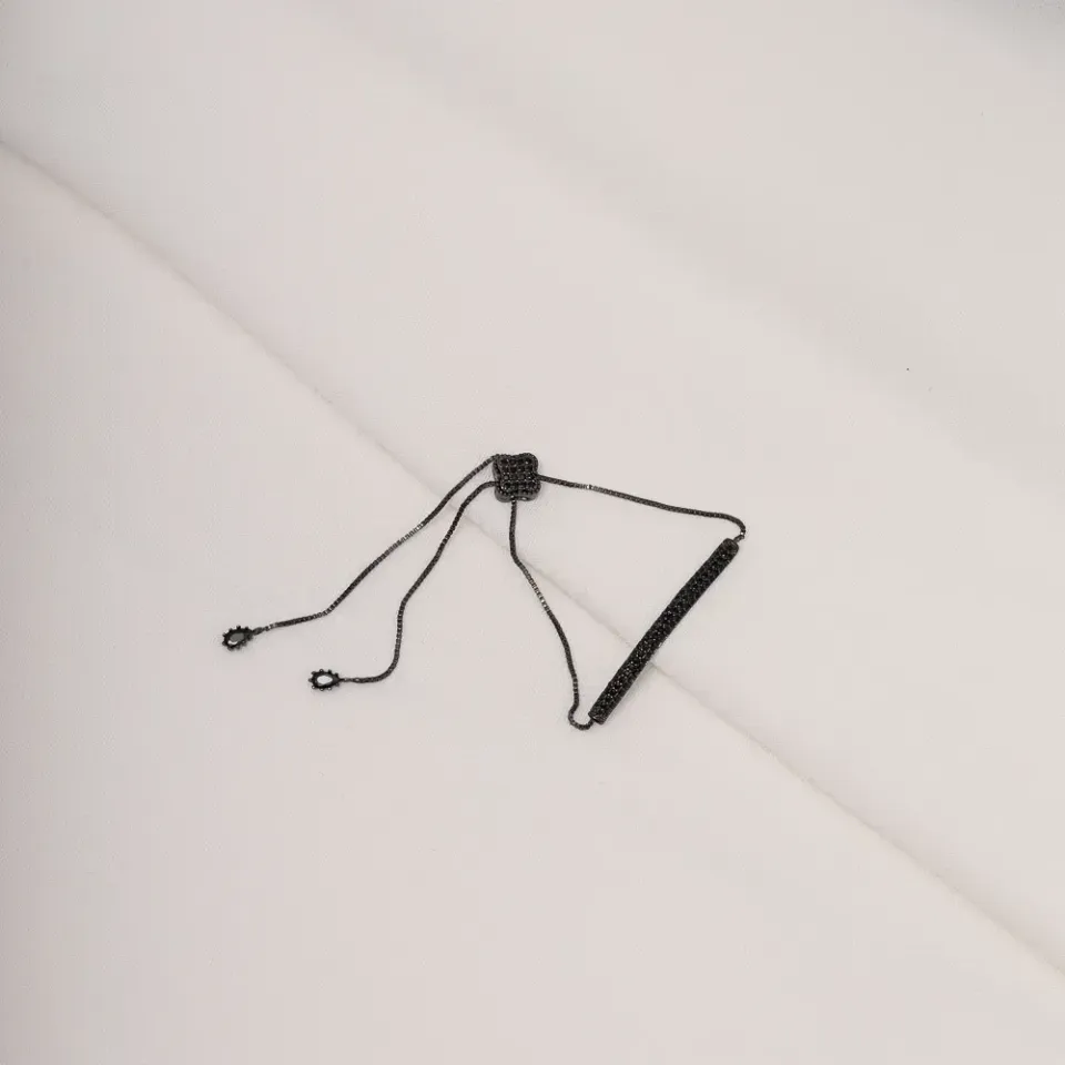 PULSEIRA COM ZIRCÔNIAS NEGRAS FECHO GRAVATINHA BANHO RÓDIO NEGRO