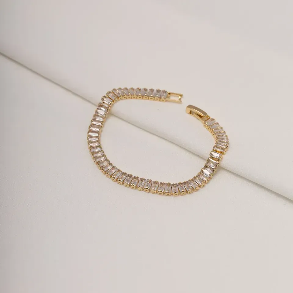 PULSEIRA RIVIERA COM ZIRCÔNIAS NAVETE CRISTAIS BANHO OURO 18K