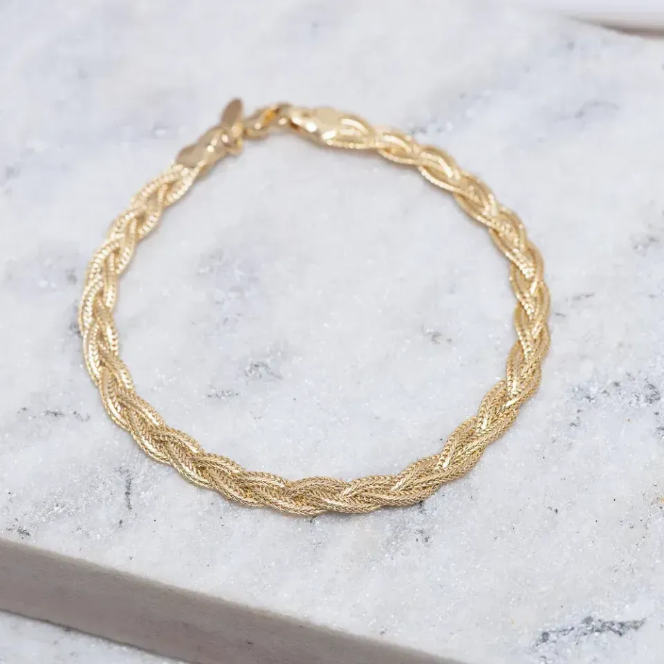 PULSEIRA TRANÇADA BANHO OURO 18K