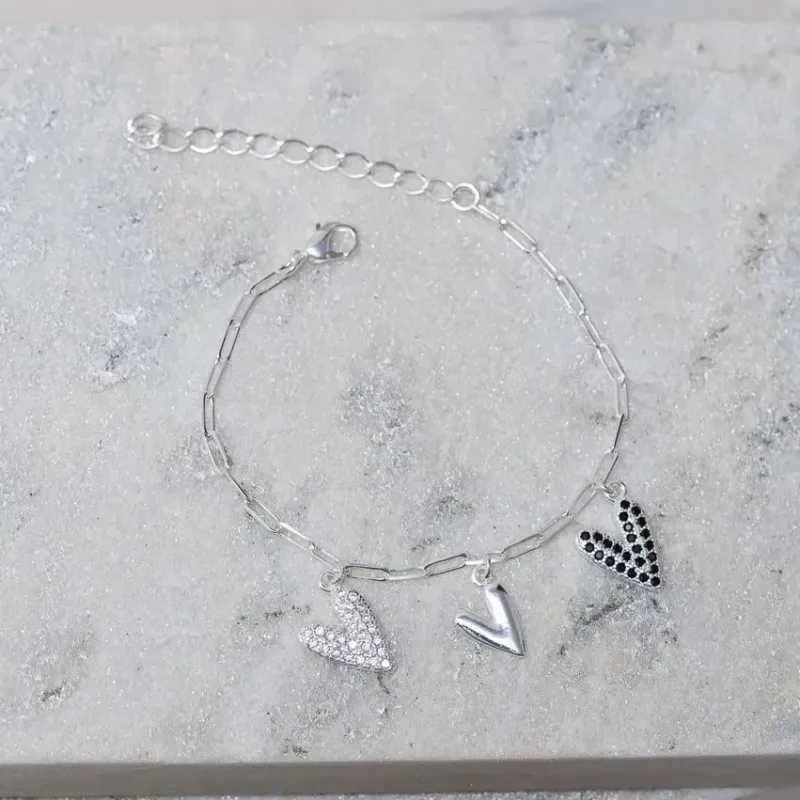 PULSEIRA TRÊS CORAÇÕES CRAVEJADO E LISO BANHO PRATA