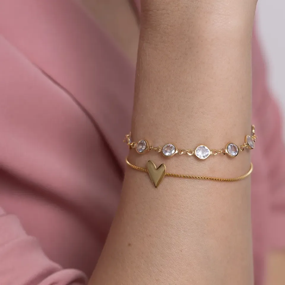 PULSEIRA VENEZIANA COM CORAÇÃO LISO BANHO OURO 18K