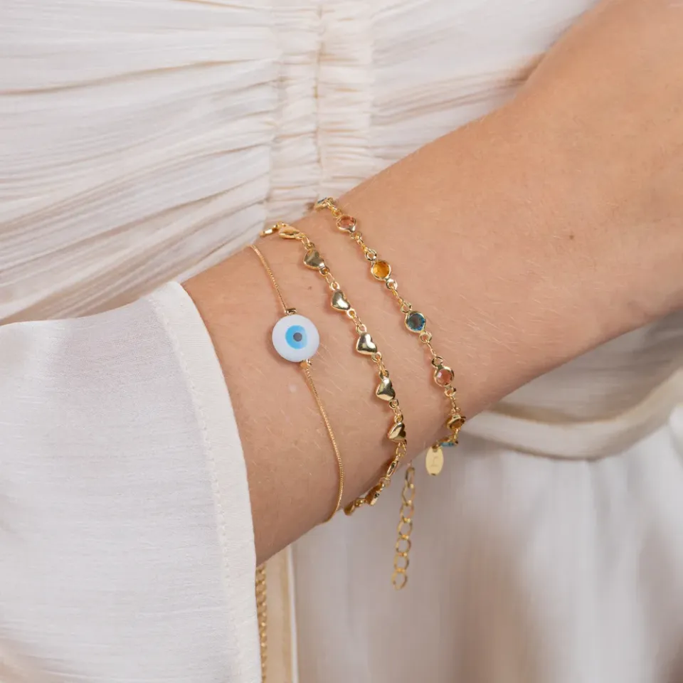 Pulseira Veneziana Fina com Olho Grego em banho Ouro 18K