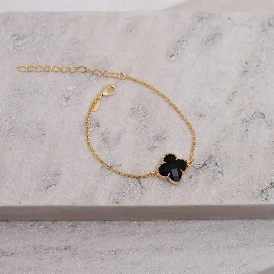 PULSEIRA VIRGINIA PEDRA PRETA BANHO OURO 18K