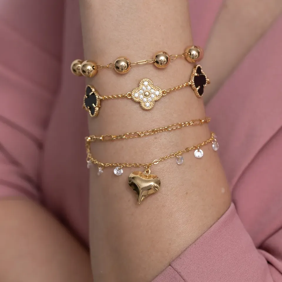 PULSEIRA VIRGINIA PEDRA PRETA E ZIRCÔNIA CRISTAL BANHO OURO 18K