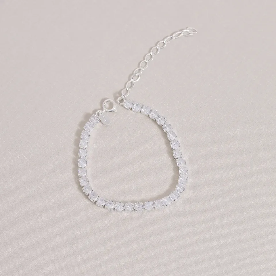 PULSEIRA RIVIERA COM ZIRCÔNIAS QUADRADAS CRISTAIS BANHO PRATA