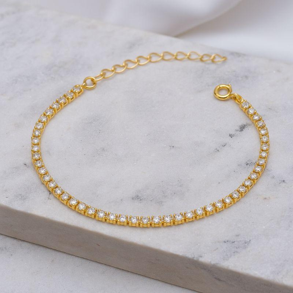PULSEIRA CRAVEJADA COM ZIRCÔNIAS CRISTAIS M BANHO OURO 18K