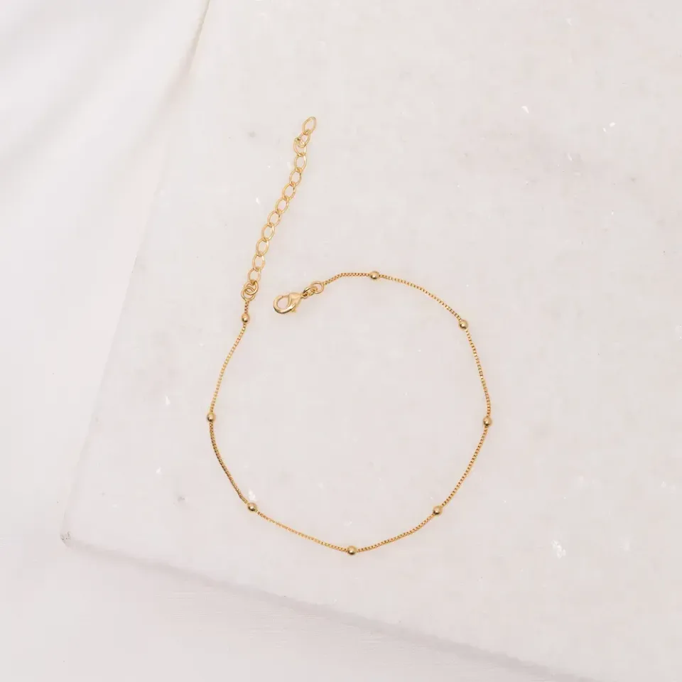 TORNOZELEIRA COM BOLINHAS BANHO OURO 18K