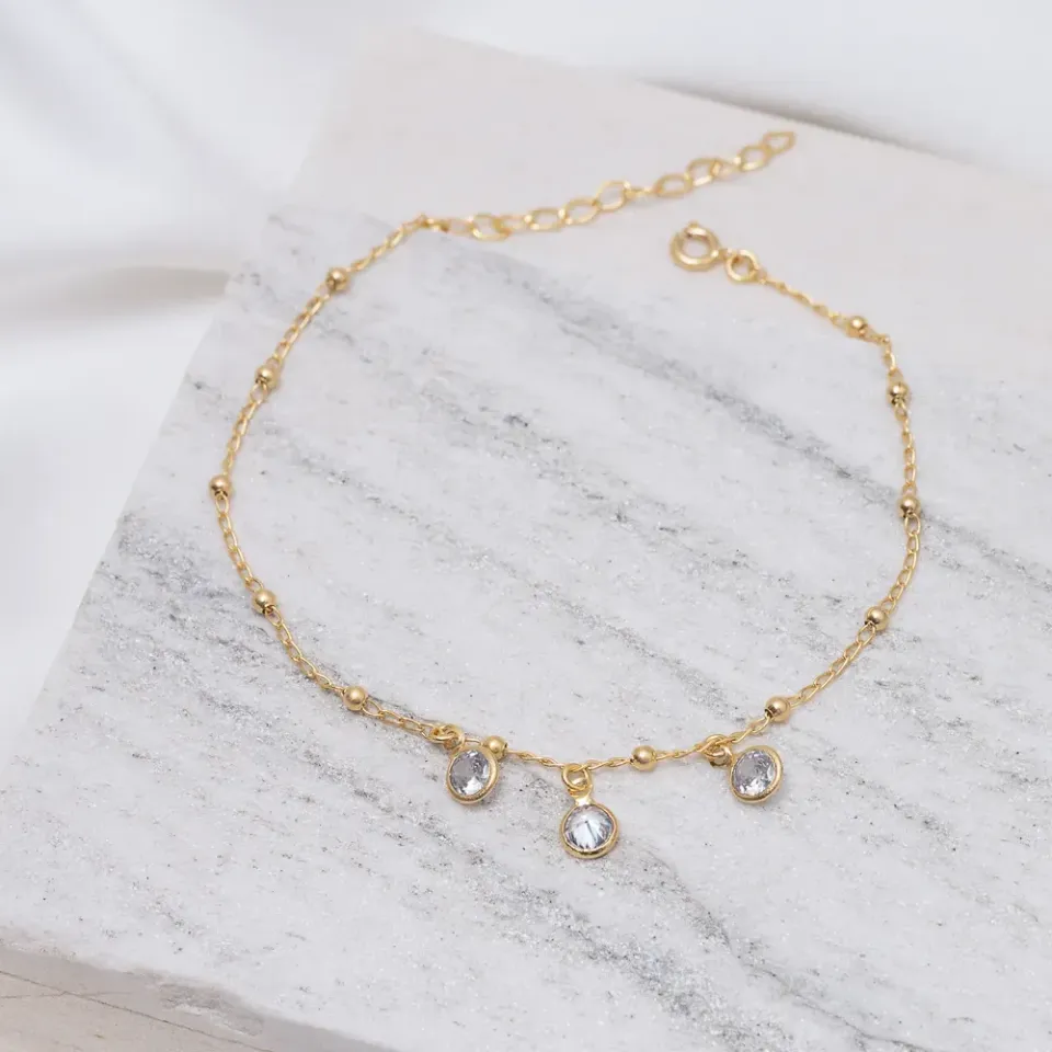 TORNOZELEIRA COM TRÊS PONTO DE LUZ BANHO OURO 18K