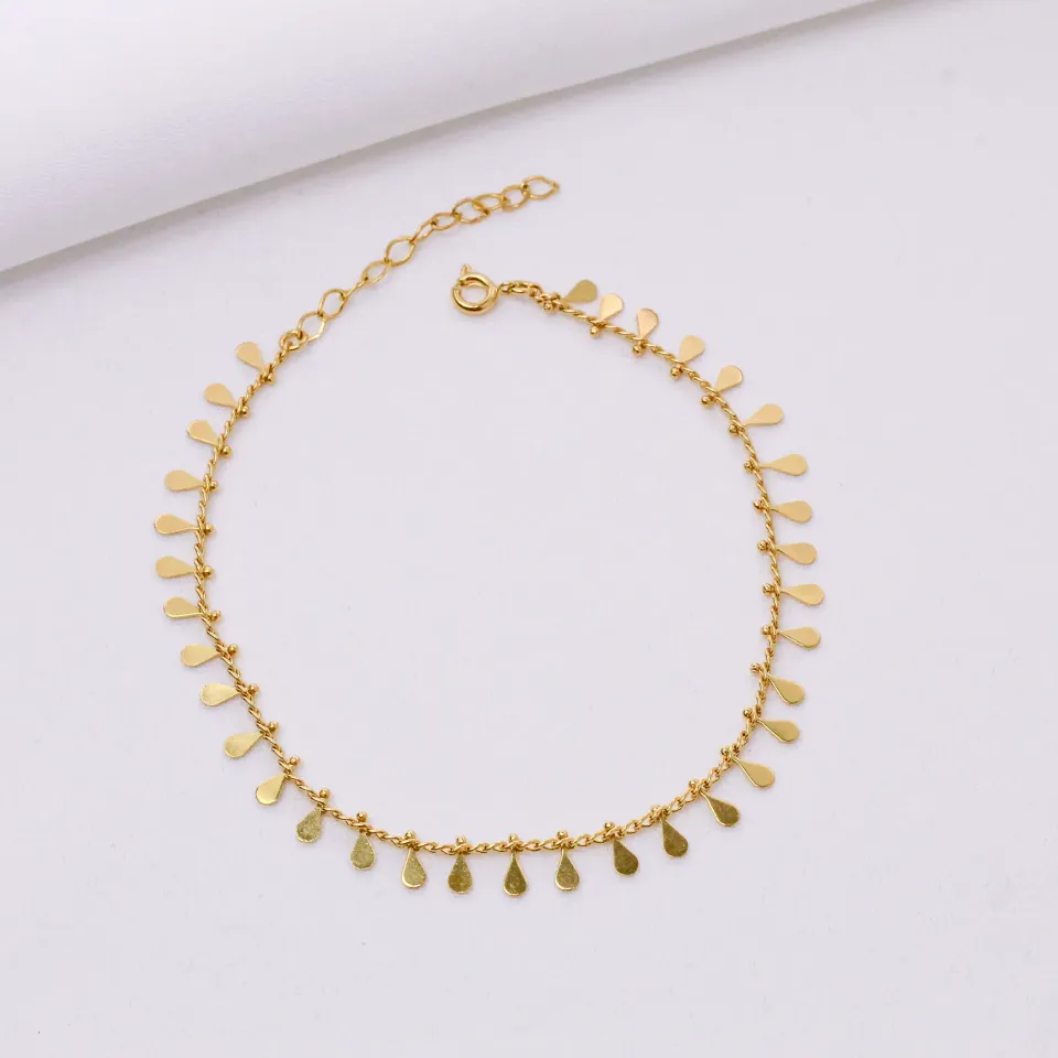 TORNOZELEIRA COM PINGENTES FORMATO DE GOTA BANHO OURO 18K