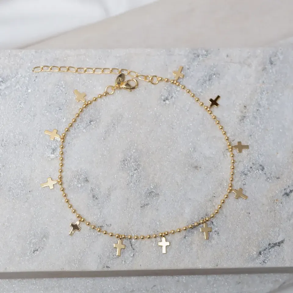 Tornozeleira Cruz Lisas em banho Ouro 18K