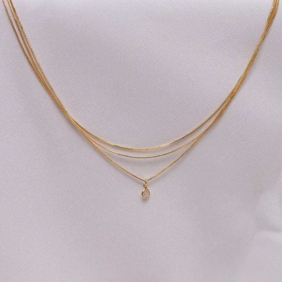 TORNOZELEIRA TRIPLA COM CRITAL BANHO OURO 18K