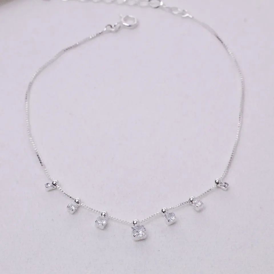 TORNOZELEIRA COM ZIRCÔNIAS QUADRADAS CRISTAL BANHO PRATA